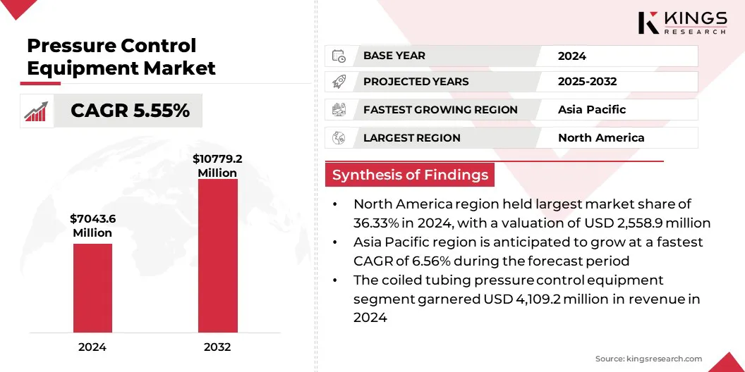 The global pressure control equipment market size was valued at USD 7,043.6 million in 2024 and is projected to grow from USD 7,387.8 million in 2025 to USD 10,779.2 million by 2032, exhibiting a CAGR of 5.55% during the forecast period.