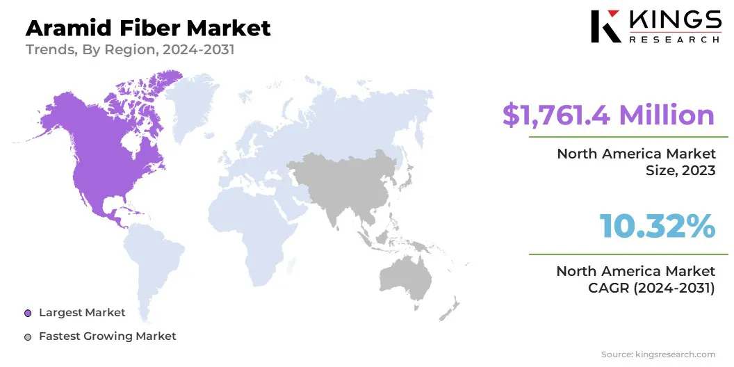 Kuzey Amerika Aramid Fiber Pazarı, 2023'te 1.761,4 milyon ABD Doları değerinde% 36,78 civarında önemli bir pay oluşturdu. Bu hakimiyet, Aramid liflerinin vücut zırhı, yüksek performanslı lastikler ve hafif kompozitler dahil olmak üzere uygulamalar için çok önemli olduğu savunma, otomotiv ve havacılık gibi kilit endüstrilerden gelen güçlü talebe atfedilmektedir.
