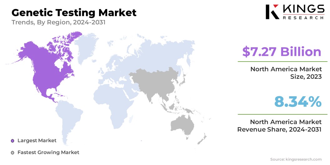 Coğrafi olarak Kuzey Amerika ve Avrupa, köklü sağlık altyapısı, uygun geri ödeme politikaları ve ileri tıbbi teknolojilerin yüksek benimsenme oranları nedeniyle pazara liderlik ediyor. Ancak Asya-Pasifik bölgesinin, artan sağlık yatırımları, genetik testlerle ilgili farkındalığın artması ve endüstri oyuncuları ile yerel sağlık hizmeti sağlayıcıları arasındaki artan ortaklıklar nedeniyle öngörülebilir gelecekte en yüksek büyümeye tanık olması bekleniyor.